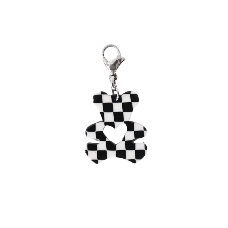 El charm Amoroso es un oso con un diseño de cuadros blancos y negros que le da un aire único y divertido. En el centro, un corazón resalta su lado más tierno. Sus detalles en acero inoxidable plateado lo hacen perfecto para combinar con diferentes cadenas y otros charms. Un mix entre dulzura y estilo que no pasa desapercibido.