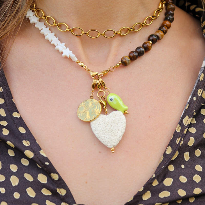 El charm Peixe es puro flow. Su diseño en forma de pescado y su color verde vibrante le dan ese aire fresco y divertido a cualquier combinación. Hecho de cerámica con detalles en acero inoxidable con baño en oro, es el complemento perfecto para quienes aman los accesorios con personalidad. ¡Déjate llevar por las olas del estilo!