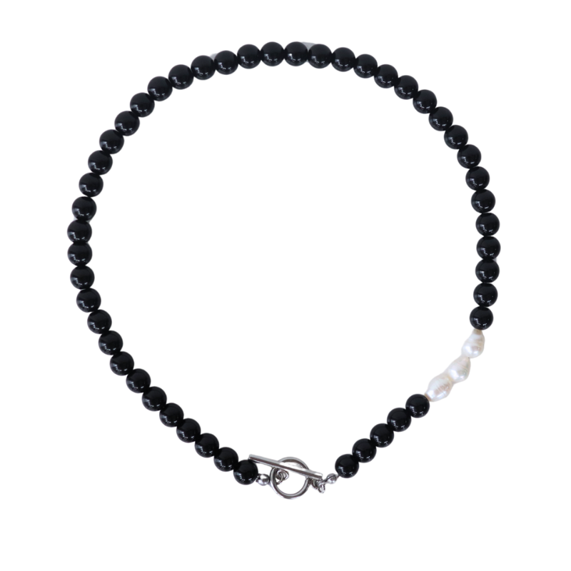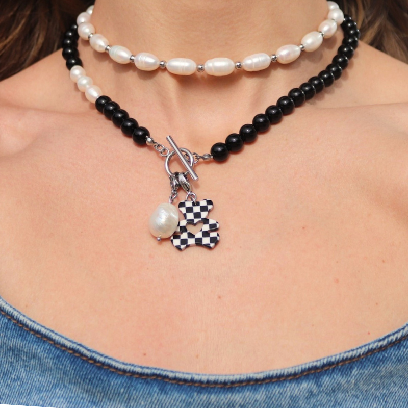 El collar Lía combina la intensidad de las bolas negras con el brillo sutil de perlas de agua dulce, creando un equilibrio perfecto entre fuerza y delicadeza. Con una longitud de 44 cm y fabricado en acero inoxidable plateado, es ideal para personalizar con tus charms favoritos y hacer que cada look tenga tu esencia. Todos nuestros collares están hechos a mano.
